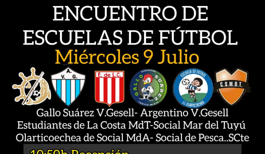 Este 9 de julio, se invita a la comunidad a participar del Encuentro Regional de Escuelas de Fútbol, que se llevará a cabo en las instalaciones del Club Social de Pesca, Náutica y Fomento San Clemente, ubicado en Avenida Naval y calle 37, San Clemente del Tuyú.