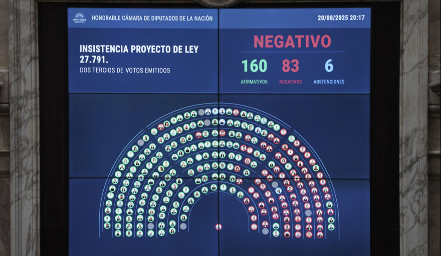 No se alcanzaron los dos tercios. Hubo 160 voluntades a favor de insistir con la ley, 83 en contra y 6 abstenciones, que fueron claves.