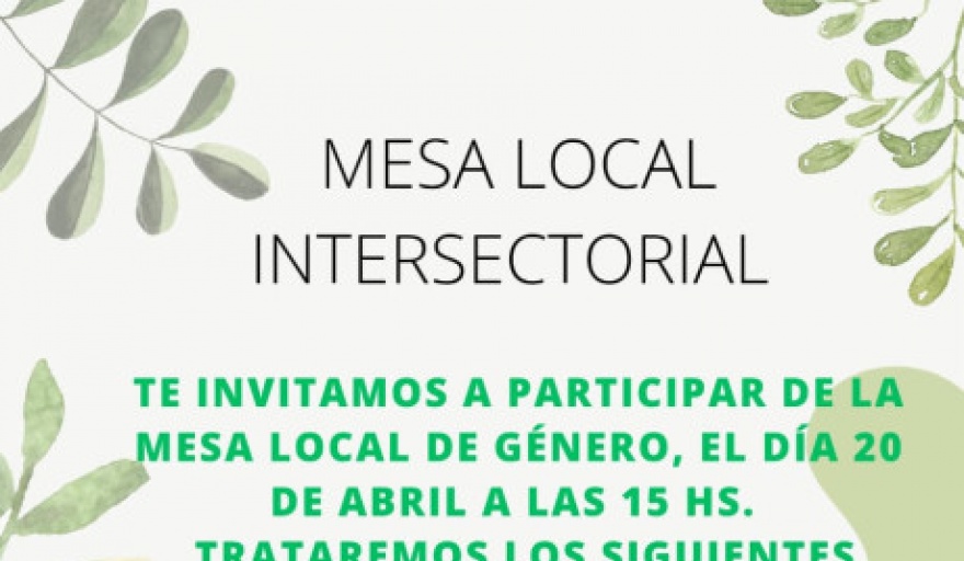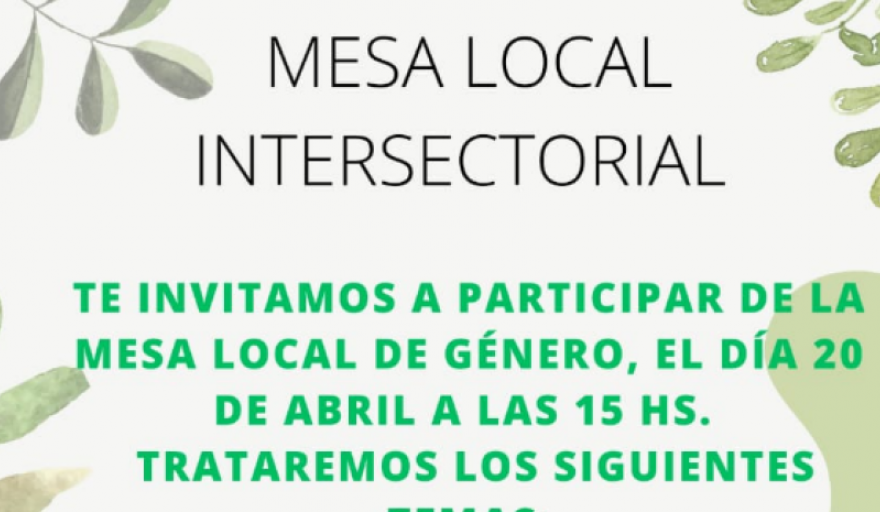 La Secretaría de Calidad de Vida y Desarrollo Humano informó que este jueves 20 de abril de 2023 se llevará a cabo una charla con la Mesa Local de Género en el Centro Integral Comunitario (CIC), ubicado en la calle Belgrano N°967 del Casco Urbano.