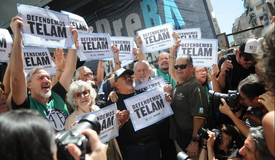 El rechazo al anuncio de cierre y "al intento de cercenar el derecho a la información de toda la población" tuvo su principal expresión este lunes al mediodía en las puertas de Télam, donde se realizó un abrazo simbólico convocado por los trabajadores de la agencia y del Sindicato de Prensa de Buenos Aires (Sipreba), aunque también se sintió por redes sociales.