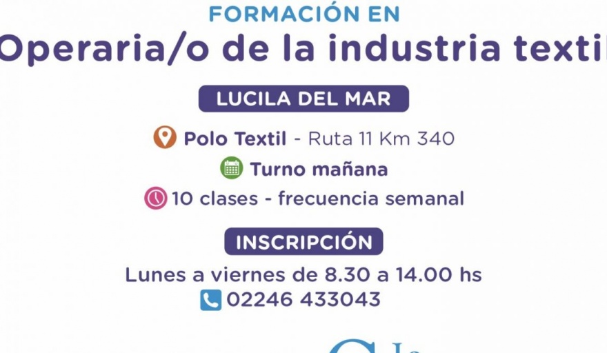 La Municipalidad de La Costa informa que hasta este viernes 10 se encuentra abierta la inscripción para sumarse al taller de formación en Operario/a de la Industria Textil.