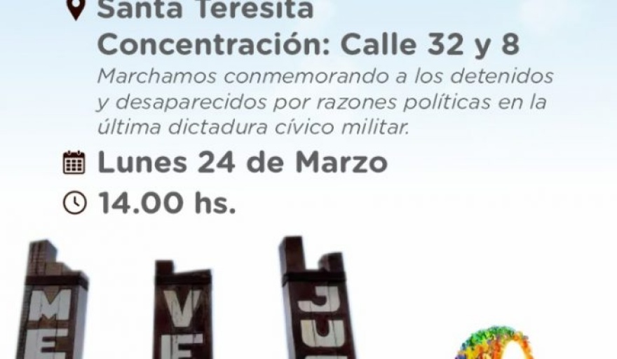 La Municipalidad de la Costa invita a la comunidad a participar del acto central por el “Día de la Memoria, la Verdad y la Justicia”, organizado por “Familiares de Detenidos y Desaparecidos por razones políticas de La Costa”, que tendrá lugar el lunes 24 de marzo en Santa Teresita.