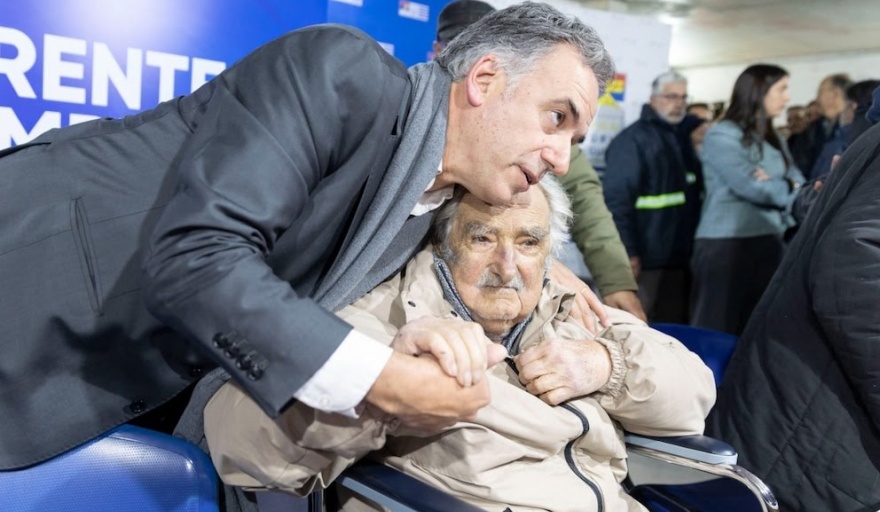 Yamandú Orsi junto a José Mujica en un acto de campaña electoral del Frente Amplio de Uruguay (MPP)