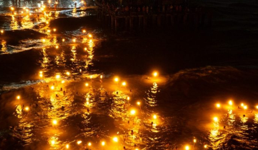 En una noche iluminada, los guardavidas ingresan al mar portando antorchas encendidas, creando una postal única y conmovedora que reconoce su labor diaria en la seguridad de los bañistas, a través del Operativo de Seguridad en Playa, que cada año despliega la Municipalidad de La Costa del 15 de noviembre al 15 de abril.
