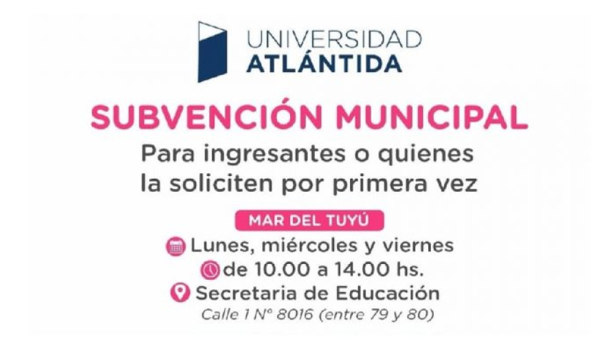 La Municipalidad de La Costa informa que a partir de hoy lunes 19 comienza la recepción de documentación para estudiantes de la Universidad Atlántida Argentina (UAA) que ingresen a la institución o que soliciten por primera vez la subvención municipal.